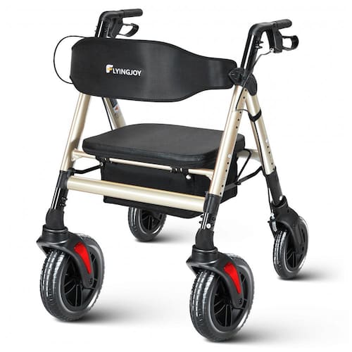 COMFORT HEAVY DUTY ROLLATOR WALKER The Rolling walker apresenta uma estrutura de alumínio para suportar até 200 kg. Você pode virar o encosto para sentar e descansar, e o assento e o encosto são feitos de poliéster macio, é durável e confortável. É amigável para sua cintura e quadris. Por favor, trave os freios quando estiver sentado. TAMANHO AJUSTÁVEL O andarilho dobrável Flyingjoy tem 8 níveis de altura para personalizar a altura adequada do punho e do assento. certifique se de que os orifícios de ajuste de altura estejam na mesma altura e confirme se o botão travou a alça do tubo. PNEUS SEM AR PARA TODOS OS TERRENOS O andarilho para idosos possui pneus sem ar de 20 centimetros com função de absorção de choque, adequado para ambientes internos e externos. DOBRAS E ZENAMENTO FÁCEIS O andador Flyingjoy é facilmente dobrável para transporte e zenamento convenientes. Basta levantar o assento e puxar a alavanca de dobramento para dobrar o andarilho. AVISO O andarilho é para ajudar a caminhar e as pessoas NÃO PODEM empurrá lo quando estão sentados nele Não são necessárias ferramentas para montar e desmontar a cadeira rolante. Siga rigorosamente as instruções Marca: Não Informado