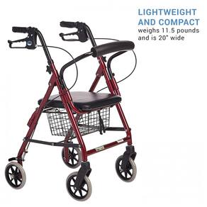 PERFEITO PARA USUÁRIOS PEQUENOS Os punhos ergonômicos facilmente ajustáveis variam de 69, a 81,3 centimetros o assento acolchoado fica a 47 centimetros do chão. LEVE E COMPACTO Um dos andadores de 4 rodas mais leves do 5,2 kg incrivelmente compacto com 50,8 centimetros de largura com alças espaçadas de 30,5 centimetros de distância. FREIOS DE FÁCIL APLICAÇÃO Os punhos grandes facilitam a frenagem o recurso de bloqueio no local de segurança evita o rolamento não intencional. RODAS RESISTENTES Pneus grandes de rodam suavemente sobre qualquer superfície dentro ou fora e o design de borracha durável significa rodas livres de manutenção. MÁXIMO CONFORTO O assento acolchoado de 30,5 centimetros x 30,5 centimetros e o encosto curvo proporcionam conforto ideal para uma sessão e descanso agradáveis Marca: Não Informado
