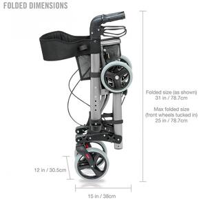 ANDADOR DE ROLAMENTO COM ASSENTO E ENCOSTO dobra se facilmente para zenamento e transporte. Nenhuma ferramenta necessária e fácil de montar. Feito de alumínio durável, mas leve, que pode suportar até 136 kg. O ROLLATOR WALKER COM ASSENTO ajuda a aumentar a mobilidade com rodas de borracha de 20 centímetros na frente e 18 centímetros na traseira com freios de mão estilo bicicleta. A alça ajustável vai de 79 a 91 centímetros em incrementos de 2,5 centímetros. Assento acolchoado é construído com encosto e alturas de alça ajustáveis para garantir ajuste e conforto otimizados, tornando os os caminhantes perfeitos para idosos. UPRIGHT WALKER IS elegível para contas de gastos flexíveis FSA. ESPECIFICAÇÕES DO WALKER Alça ajustável 79 a 91 centímetros Largura entre alças 46 centímetros Altura do assento 53 centímetros do chão Tamanho do assento 46 por 25 centímetros Dimensões dobradas 63,5 x 42 x 28,5 centímetros Marca: Não Informado