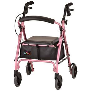 RODAS E FREIOS Equipadas com rodas de borracha de 15 centimetros com base larga de 2,5 centimetros, as rodas da NOVA são duráveis, ótimas para uso interno e externo e tornam o passeio suave e estável. Os freios de mão de toque de pena patenteados da NOVA são projetados exclusivamente para máximo conforto e controle. É fácil engatar o freio com um aperto pequeno e força mínima da mão. Estacionar ou travar os freios requer apenas um leve empurrão para baixo na alavanca e um puxão para cima para liberar. Nossos freios são apoiados pela melhor garantia de freio com garantia de 5 anos em todas as peças de freio.