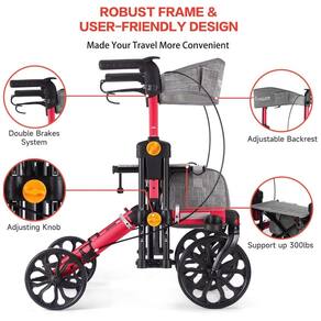 O Andador AllTerrain da FlyingJoy é um produto certificado e confiável que atende rigorosos padrões internacionais de segurança, apresentando uma estrutura reforçada de alumínio e um assento espaçoso projetado para suportar até 136 kg. As alturas ajustáveis do guidão e do assento garantem conforto ergonômico para idosos, pacientes em reabilitação ou indivíduos que necessitam de assistência de mobilidade. Com um quadro resistente, amplo espaço de armazenamento e suporte para bengala, as alturas do guidão e do assento podem ser ajustadas de acordo com a altura do usuário, garantindo conforto e segurança durante o uso. Fácil de operar e conveniente para usuários de diferentes alturas. Equipado com uma caixa de armazenamento com capacidade de carga máxima de 5 kg, é conveniente para os usuários guardarem itens pessoais como sacolas de compras, livros ou garrafas de água. Adequado para uso doméstico, oferecendo suporte móvel seguro e estável para usuários com mobilidade limitada. Design com rodas ponderadas adequado para uso em diversas superfícies, como parques e shopping centers. Ideal para treinamento de reabilitação, auxiliando pacientes no período de reabilitação a se envolverem em atividades diárias e promover a recuperação. O design dobrável facilita o transporte e é adequado para uso ao ar livre. Com capacidade para suportar até 136 kg e uma faixa de altura ajustável de 83 a 102 cm, pode acomodar usuários de 165 a 205 cm. Um auxiliar de caminhada multifuncional, confortável e portátil, desenvolvido especialmente para pessoas com mobilidade limitada, adequado para idosos, pacientes em reabilitação ou usuários que necessitam de suporte adicional. Combina as vantagens de cadeiras de rodas e andadores para fornecer aos usuários uma experiência móvel segura e conveniente.
