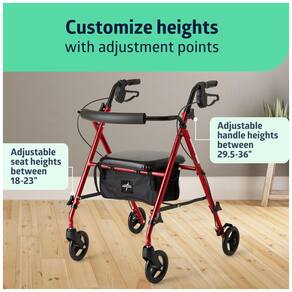 Confiável por profissionais de saúde em todo lugar, o Rollator super leve da Medline, com braços e assento ajustáveis, é o suporte perfeito para idosos, adultos, pessoas idosas e aqueles com mobilidade reduzida. Este Rollator está equipado com rodas de 15 cm para se mover facilmente de ambientes internos para externos, mais suave do que nunca. Possui assento acolchoado preto de 30x30 cm, pesa apenas 5,7 kg, suporta até 113 kg e vem em um chassi de alumínio vermelho. Equipado com amplo espaço de armazenamento sob o assento, este Rollator transporta você e seus pertences de forma segura e conveniente. Para acionar os FREIOS, basta apertar os braços de aderência fácil. Para manter as rodas em uma posição segura e travada, empurre os braços de aderência para baixo. Isso evita que o Rollator se mova quando estiver parado, sentado ou levantando. Ajuste facilmente a altura das alças para um ajuste perfeito a partir de 75 cm. ROLLATOR ULTRA LEVE: Pesa apenas 5,7 kg, mas suporta uma capacidade de peso de até 113 kg, tornando-o seguro e confortável para o usuário e seus pertences. MANOPLAS DE FREIO FÁCEIS DE USAR: As alças ergonômicas são fáceis para idosos e mãos frágeis segurarem, sem serem escorregadias - empurre para FREAR e empurre para baixo para travar as rodas no lugar. ASSENTO E ALÇAS AJUSTÁVEIS EM ALTURA: Assento acolchoado de 30x30 cm ajusta de 46-58 cm do chão; alças ajustam de 75 cm do chão para um ajuste personalizado e vem com armazenamento conveniente sob o assento. CHASSI DE ALUMÍNIO DOBRÁVEL: Transporte facilmente graças ao design leve e chassi dobrável. ROLAMENTO SUAVE DENTRO E FORA: Caminhe facilmente dentro e fora com rodas de 15 cm projetadas para rolar suavemente em qualquer terreno.