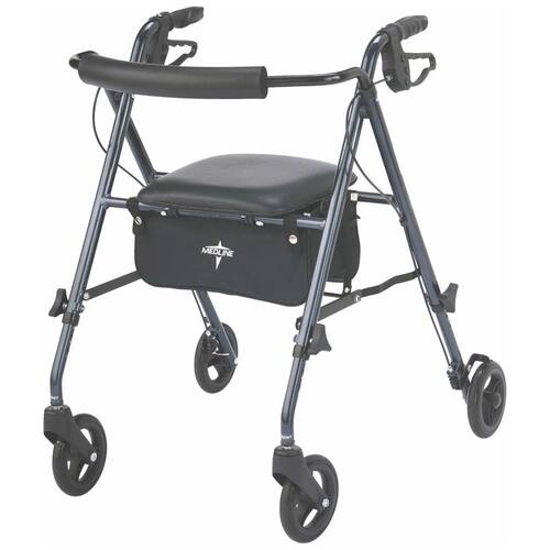 Confiado por profissionais de saúde e hospitais em todo o mundo, o Andador Rollator superleve da Medline com braços e assento ajustáveis é o suporte perfeito para idosos, adultos, idosos e pessoas com mobilidade reduzida. Este rollator, disponível por um ótimo valor, possui 6 rodas para se movimentar facilmente de ambientes internos para externos como nunca antes. Com um assento acolchoado preto de 30,48 x 30,48 cm, pesa apenas 5,71 kg, suporta até 113,4 kg e possui estrutura de alumínio azul esfumaçado. Equipado com amplo espaço de armazenamento sob o assento, este rollator transporta você e seus itens essenciais com segurança e conveniência. Para acionar os freios, basta apertar os suportes de aderência fácil. Para manter as rodas em uma posição segura e travada, empurre os suportes de aderência para baixo. Isso impede que o rollator se mova ao parar, sentar ou levantar. Ajuste facilmente a altura dos suportes para um ajuste perfeito a partir de 75 cm. ROLLATOR ULTRA LEVE: Pesa apenas 5,71 kg, mas suporta até 113,4 kg, tornando-o seguro e confortável para o usuário e seus pertences. MANOPLAS DE FREIO FÁCEIS DE USAR: As manoplas ergonômicas são fáceis para idosos e mãos frágeis segurarem, sem escorregar. Empurre para FREIAR e empurre para baixo para travar as rodas no lugar. ASSENTO E SUPORTES AJUSTÁVEIS EM ALTURA: Assento acolchoado de 30,48 x 30,48 cm ajusta de 45,72 a 58,42 cm do chão; suportes ajustam de 75 cm do chão para um ajuste personalizado. ESTRUTURA DE ALUMÍNIO DOBRÁVEL: Fácil de transportar graças ao design leve e estrutura dobrável. ROLAGEM SUAVE DENTRO E FORA: Caminhe facilmente dentro e fora de casa com rodas de 15,24 cm projetadas para rolar suavemente em qualquer terreno.