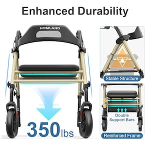 RESISTÊNCIA ENCONTRA DESIGN. Nosso andador de 4 rodas é projetado com uma estrutura reforçada e barras de suporte duplas, suportando até 159 quilos. Com tubulação espessa e construção robusta, garante durabilidade e estabilidade a cada passo. CONFORTO APRIMORADO. Alturas ajustáveis do assento e das alças acomodam usuários de 119 a 167 centímetros. Desfrute de um encosto respirável e um assento extra amplo de espuma viscoelástica que prioriza o conforto e a segurança, tornando cada passeio um prazer. SEGURANÇA COMPLETA. 1. Sistema de Freio Confiável, com três modos: livre, desaceleração e parada para controle final. 2. Design do Ponto de Dobra à Prova de Prender, pontos de dobra totalmente fechados evitam beliscões. 3. Empunhaduras Ergonômicas, empunhaduras macias reduzem a fadiga das mãos, permitindo fácil utilização por indivíduos com força limitada. 4. Faixas Multirrefletivas, aumentam a visibilidade durante o uso noturno. MOBILIDADE SEM ESFORÇO. Deslize sobre qualquer terreno com nossas rodas anti-furo, habilmente projetadas para movimentos suaves dentro e fora de casa. Seja passeando pelo parque ou navegando pela sua casa, este andador torna a mobilidade fácil e agradável. DOBRÁVEL E CONVENIENTE. Com apenas 9,25 quilos, este andador de 4 rodas combina resistência com portabilidade. Seu design de dobra rápida permite transporte e armazenamento fácil, encaixando perfeitamente em seu estilo de vida.