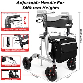 O Andador Rollator da Henmnii foi projetado para proporcionar maior mobilidade e conforto para idosos e adultos. Com estrutura de alumínio leve e resistente, pesando apenas 7,5 kg, é ajustável em altura de 84 cm a 97 cm, atendendo usuários de 1,50 m a 1,98 m. Com capacidade de peso de até 136 kg, oferece a possibilidade de se manter ativo ao ar livre, mantendo-se saudável e em forma. Suas rodas de 20 cm com função de absorção de choque permitem fácil movimentação em diversos tipos de terreno, incluindo superfícies irregulares como cascalho, grama e terra. O sistema de freios duplos sensíveis permite controlar a velocidade com facilidade, garantindo segurança ao descer ladeiras. Além disso, o assento mais largo e o encosto acolchoado proporcionam conforto ao usuário. Compacto e fácil de dobrar, possui uma bolsa multifuncional que facilita o transporte e armazenamento. Adquira o Andador Rollator Henmnii para desfrutar de mais liberdade e independência em suas atividades diárias.