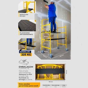 O Andaime Plataforma Dobrável Portátil CSM é uma solução prática e segura para trabalhos em altura, ideal para serviços de pintura, manutenção e construção. Possui estrutura resistente e dobrável, facilitando o transporte e o armazenamento. Leve e fácil de montar, oferece estabilidade e conforto durante o uso, sendo uma excelente escolha para quem busca praticidade e eficiência nas atividades profissionais do dia a dia.
