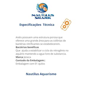 Anéis Cerâmico Jeneca- CR1000 Os anéis cerâmicos são um tipo de mídia filtrante comumente para aquários auxiliando o crescimento de bactérias benéficas. Eles são projetados para a filtragem biológica, que é essencial para manter a qualidade da água no aquário. Característica do Produto: Anéis possuem uma estrutura porosa que oferece uma grande área para as colônias de bactérias nitrificantes se estabelecerem. Bactérias benéficas ajudando a estabilizar o ciclo do nitrogênio no aquário mantendo a agua livre de substancia. Marca Jeneca Contudo da Embalagem Embalagem com 01 quilos Vendido e Entregue: