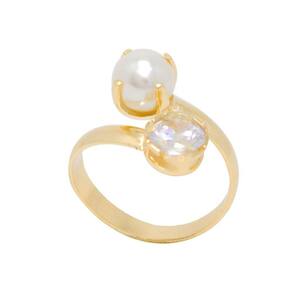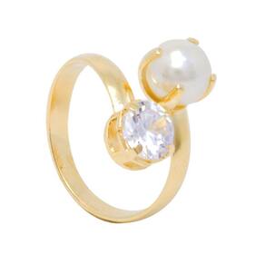 Anel Semijoia com Banho de Ouro 18k, com Pérola e Zircônia, ajustável. Um clássico e exuberante modelo que vai surpreender a mulher amada.