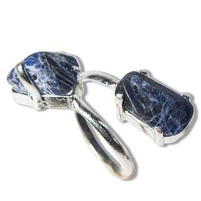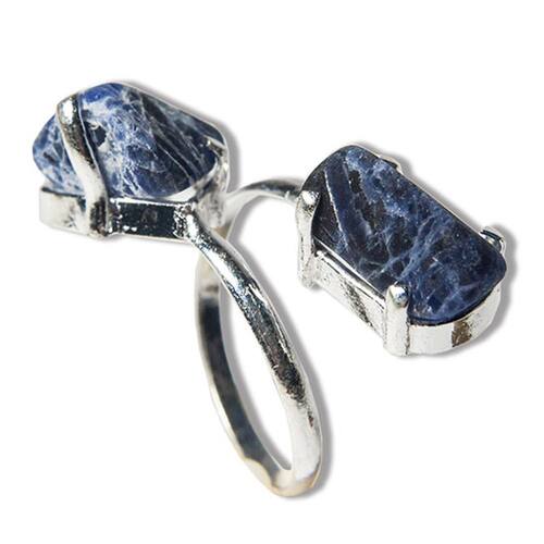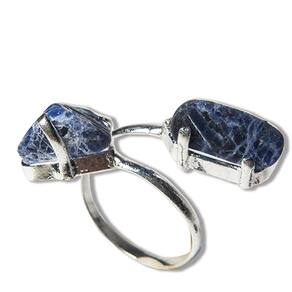Anel 2 Pedras Sodalita Rolada Natural Aro Ajustável Prateado, Anel aro ajustável com banho prateado montado com 2 pedras Sodalita roladas. Beleza e cura natural em uma única peça. Sodalita é uma pedra que pode produzir fortes mudanças em sua atitude, ela o ajuda a ser mais objetivo e menos crítico a cerca do modo como lidar com a existência e a desvencilharse das armadilhas provocadas por um estilo de vida complicado.