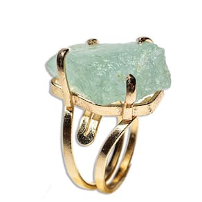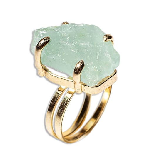 Anel Águas Marinhas Bruto Aro Ajustável Média 25mm Dourado - regulável