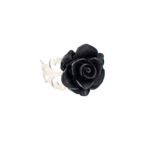 Anel Ajustável Rosa Negra Metal Anel Ajustável Rosa Negra Metal