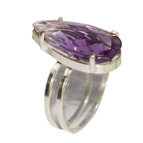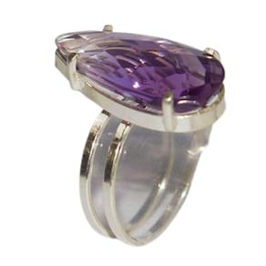 Anel ametista gota facetada em prata 950 - elegante e sofisticado, perfeito para completar qualquer look com um toque de cor e brilho. Anel Pedra Ametista Gota Facetado Prata 950 Ajustavel, Anel Prata 950 com Pedra Ametista Extra natural de garimpo, exotica com lapidação Gota Facetado Montagem também manual Prata de lei aro ajustável em qualquer dedo joia reforçada com pedra Brasileira mineral autêntico de garimpo. NOME DAS PEDRAS: Ametista Pedra Natural COR DAS PEDRAS: Roxo (Foto Ilustrativa)