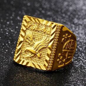 Anel Banhado A Ouro Ajustável Eagle Trabalhado Lindo Anel Ajustável. Perfeito para todas as ocasiões, inclusive para presentear, já que não precisa saber exatamente o tamanho pra comprar. Por ser ajustável cabe perfeitamente em qualquer circunferência anelar. Bela peça, acessório imponente, com fino acabamento. Trabalhado com a imagem de uma águia e detalhes na lateral. Largura de superfície: 9mm Peso líquido: cerca de 9gr Cor: Dourado Tamanho: Ajustável