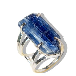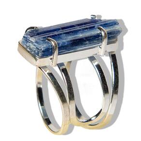 Anel de Cianita Azul Natural em Prata 950 com Montagem em Garra – Equilíbrio e Elegância Desperte o poder da Cianita Azul com este elegante anel de prata 950. A pedra natural, cuidadosamente lapidada e montada com garras reforçadas, destaca o brilho e a beleza única da Cianita Azul, conhecida por suas propriedades energéticas e tranquilizantes. Um acessório sofisticado e atemporal para quem busca estilo e harmonia. Detalhes do Produto: Material: Prata 950 de alta qualidade, resistente e durável. Pedra: Cianita Azul natural, destacada em montagem com garras. Corte: Pedra em formato bruto Aro Tamanho Ajustável: Aro ajustável para maior conforto. Pedra: 20 a 30mm Peso Total: Aproximadamente 6 gramas (pode variar conforme o tamanho da pedra). Origem: Cianita Azul proveniente de garimpo sustentável na Amazônia, Brasil. Benefícios e Propriedades Energéticas: A Cianita Azul é uma pedra amplamente reconhecida por suas propriedades de equilíbrio emocional e clareza mental. Ela auxilia na dissipação de bloqueios energéticos, promovendo serenidade e proteção espiritual. Esse anel não é apenas um acessório de beleza, mas também um amuleto para quem busca paz interior e conexão espiritual. Por Que Escolher Este Anel de Cianita Azul? Design Exclusivo: Montagem com garras em prata 950, que realça a beleza natural da pedra. Pedra Natural: Cada anel é único, com variações naturais em tonalidades e texturas, garantindo autenticidade. Versatilidade: Ideal para uso diário ou como uma peça especial para eventos, combinando com diferentes estilos. Observações: Por ser uma pedra natural, pequenas variações de cor, tonalidade e inclusões podem ocorrer, o que realça a autenticidade do produto. A hidratação ocasional com óleo mineral pode ajudar a manter o brilho da pedra. Cuidados com a Peça: Evite o contato com produtos químicos e guarde o anel em local seco para preservar o brilho da prata e a integridade da pedra. Marca: CristaisdeCurvelo