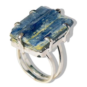 Anel de Cianita Azul Natural em Prateado com Montagem em Garra – Equilíbrio e Elegância Desperte o poder da Cianita Azul com este elegante anel em prateado. A pedra natural, cuidadosamente lapidada e montada com garras reforçadas, destaca o brilho e a beleza única da Cianita Azul, conhecida por suas propriedades energéticas e tranquilizantes. Um acessório sofisticado e atemporal para quem busca estilo e harmonia. Detalhes do Produto: Material: Prateado de alta qualidade, resistente e durável. Pedra: Cianita Azul natural, destacada em montagem com garras. Corte: Pedra em formato bruto, mantendo sua essência natural. Aro Ajustável: Para maior conforto e versatilidade. Dimensões da Pedra: 30 a 35 mm (podem variar). Peso Total: Aproximadamente 10g, dependendo do tamanho da pedra. Origem: Cianita Azul proveniente de garimpo sustentável na Amazônia, Brasil. Benefícios e Propriedades Energéticas da Cianita Azul: A Cianita Azul é amplamente reconhecida por suas propriedades de equilíbrio emocional e clareza mental. Ela auxilia na dissipação de bloqueios energéticos, promovendo serenidade e proteção espiritual. Esse anel vai além da estética, sendo um amuleto para quem busca paz interior e conexão espiritual. Por Que Escolher Este Anel de Cianita Azul? Design Exclusivo: Montagem em garras de prateado que realça a beleza natural da pedra. Pedra Natural: Cada anel é único, com variações naturais em tonalidades e texturas, garantindo autenticidade. Versatilidade: Ideal para uso diário ou como uma peça especial para eventos, combinando com diferentes estilos. Observações: Por ser uma pedra natural, pequenas variações de cor, tonalidade e inclusões podem ocorrer, realçando a autenticidade do produto. Hidratar ocasionalmente com óleo mineral pode ajudar a manter o brilho da pedra. Cuidados com a Peça: Evite o contato com produtos químicos e guarde o anel em local seco para preservar o brilho do prateado e a integridade da pedra. Marca: CristaisdeCurvelo