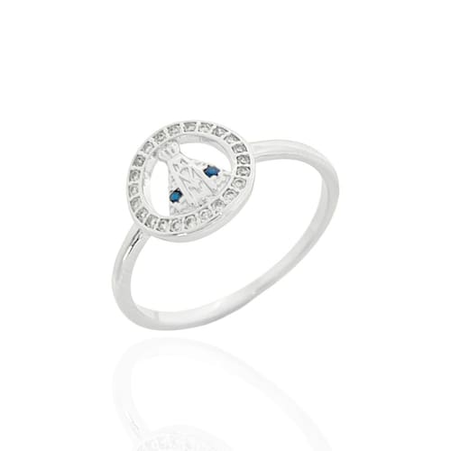 Anel Círculo Cristal Nossa Senhora Aparecida Banhado a Prata
