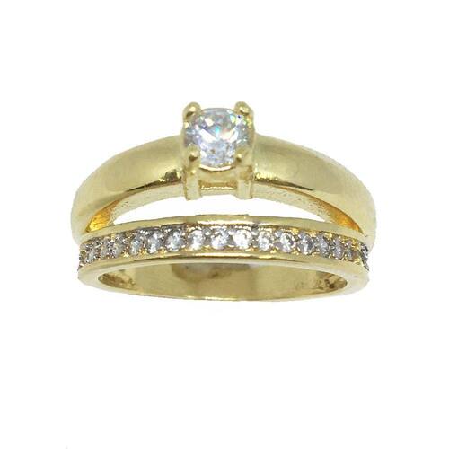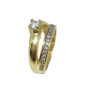 Anel Conjunto Solitário com Aparador de Zircônias Banhados a Ouro 18k com Detalhes em Ródio.