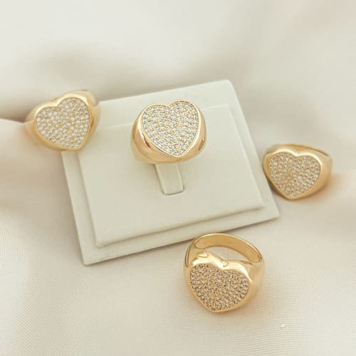 Anel Coração Cravejado Cristal Banhado a Ouro