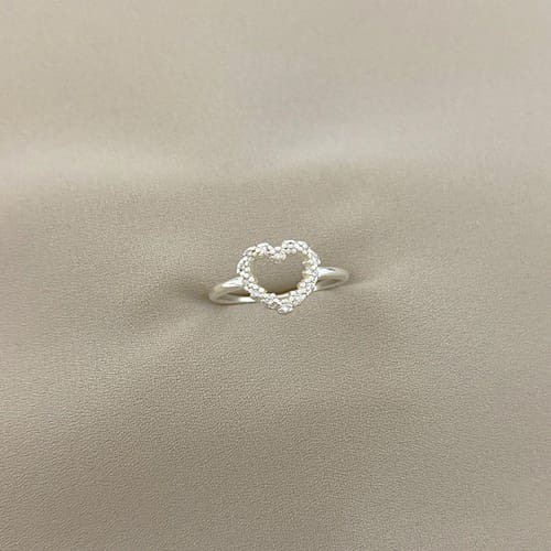 Anél Coração Vazado Cravejado com Zircônia em Prata 925