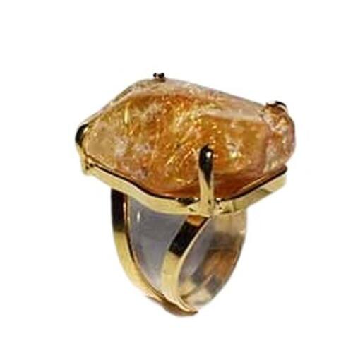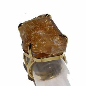 Anel cristal com rutilo dourado, brilho exuberante e elegância incomparável. Adquira já esta peça única para seu look e sinta a diferença.