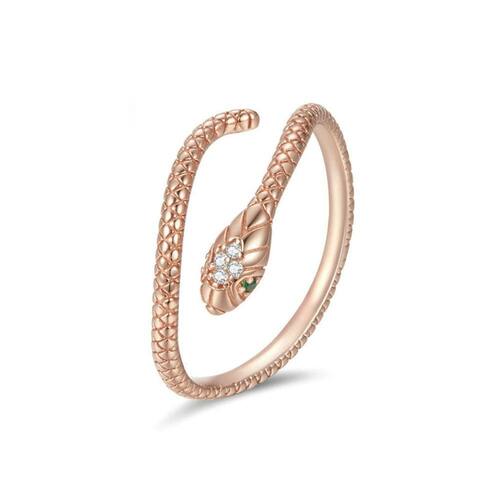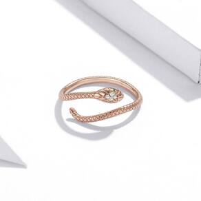 Lindo anel de cobra de prata 925 ajustável\ nCom banho de ouro rosa\ nPode ser adaptado a uma grande parte dos tamanhos\ nInstruções para ajustar:\ nAbra o anel com cuidado, pois é prateado, o anel é maleável. Deve sempre ser feito com o máximo cuidado para evitar danificar a joia.\ nAntialérgico, sem níquel, não polua. Fácil de manter e limpar\ nInstruções de limpeza: Limpe com um pano prateado para polir joias, pelo menos uma vez por semana, para manter as joias brilhantes e evitar a deterioração\ nRecomendação de uso: Não use produtos de prata em praias, piscinas, chuveiros, pois a água contém cloro ou outros minerais que afetam a aparência das joias. Caixa de veludo incluída