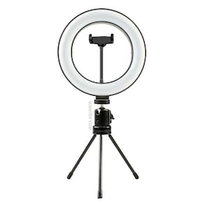 Itens inclusos: 1 anel de luz Ring Light com cabo USB e controle 1 cabeça de apoio 360º 1 suporte para celular 1 tripé de mesa
