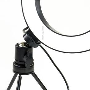 Especificações: Diâmetro do aro: 20 cm Espessura do anel: 3 cm Tripé: 18 cm Alimentação: 5v - USB Comprimento aproximado do cabo: 180 cm Temperatura de cor: 3200k - 6000K ajustável pelo controle Regulagem de ângulo: 360º