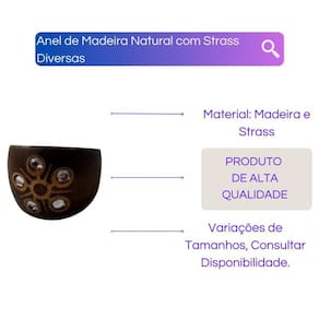 Anel de Madeira Natural com Strass Diversas Este lindo Anel ajustável é Perfeito para todas as ocasiões, aumenta o proteção e autoconfiança, inclusive para presentear aquela pessoa especial. Bela peça, acessório imponente, com fino acabamento. Material: Madeira Gênero: Unissex Contem Variações de Tamanhos, Consultar Disponibilidade do modelo. Evite: contato do anel com produtos químicos e de limpeza em geral, é indicado que você retire ao manusear estes produtos como: Cremes, Shampoo, Detergentes, Perfumes. Imagens meramente ilustrativas Tire todas as suas Dúvidas antes de concluir a compra. Embalagem de Envio: Caixa de papelão ondulado, plástico bolha, conforme necessidade do produto. Consulte nossos preços e condições para vendas. Respostas das dúvidas mais frequentes na ordem: R1: Já realizamos milhares de entregas em todo o Brasil, somos especialistas no que fazemos. R2: Assim que seu pedido for despachado, esta plataforma envia para você o código de rastreamento. R3: Enviamos o produto 100% inspecionado e conferido em nosso checkout e são embalados em embalagem de papelão e plástico bolha. R5: Iremos despachar o seu produto o mais rápido possível, assim que for confirmado pela plataforma, enviamos em até 24h. R6: Nós queremos a sua satisfação, qualquer problema iremos te auxiliar em nossos canais de comunicações. Marca: Não Informado Ean: 7890003936900