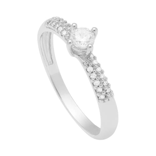 Sofisticação com um Toque Descomplicado Anel Solitário em Ouro Branco 18K com Zircônias