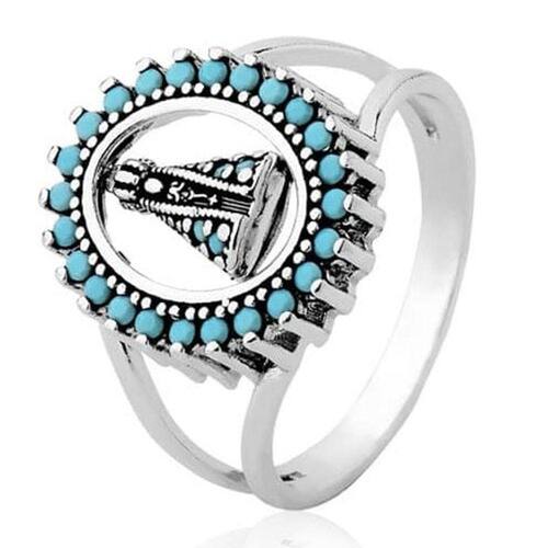 Anel de Prata Oval Nossa Senhora Aparecida Turquesa Envelhecido