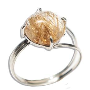 Anel Disco Pedra Rutilo no Quartzo 10mm Prata 950 Ajustável, Pedra Rutilo Dourado Incrustado no Quartzo Cristal Gema Cabochão Disco Liso Natural de garimpo, com lapidação manual aro ajustavel ao dedo serve do 10 ao 30 Prata de lei.
