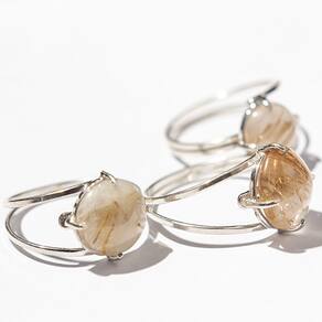 Anel Disco Pedra Rutilo no Quartzo 10mm Prata 950 Ajustável - regulável