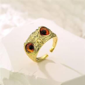 Anel dourado banhado a ouro 18k coruja olho laranja ajustável Anel ajustável coruja com olhos realistas azuis.