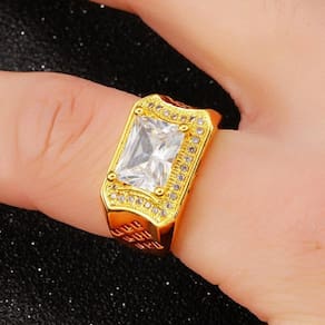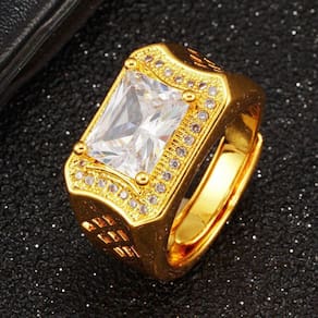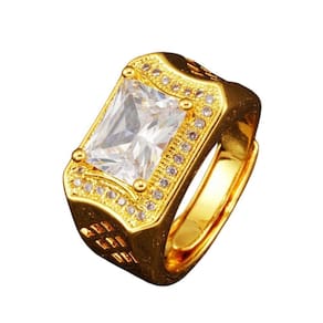 Anel Dourado Banhado Pedra Zircônia Ajustável Lindo Anel Ajustável. Perfeito para todas as ocasiões, inclusive para presentear, já que não precisa saber exatamente o tamanho pra comprar. Por ser ajustável cabe perfeitamente em qualquer circunferência anelar. Bela peça com pedra lapidada, acessório imponente, com fino acabamento em zircônias cravejadas. Largura de superfície: 12mm Peso líquido: cerca de 7,2g