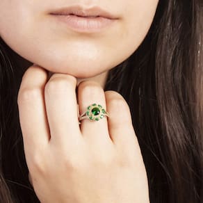 - verde Forma da pedra central: redonda EUA Tamanho do anel: