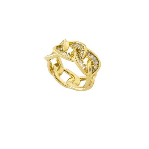 Anel Elos Largos e Baguetes Cristais: Este anel é uma verdadeira declaração de elegância e estilo. Apresenta um design ousado e moderno com elos largos cravejados com baguetes de cristais. O contraste entre os elos largos e os cristais cria um visual sofisticado e impactante. Este anel é perfeito para quem busca um acessório versátil e marcante. Seja para uso diário ou para ocasiões especiais, o Anel Elos Largos e Baguetes Cristais certamente atrairá olhares admirados.
