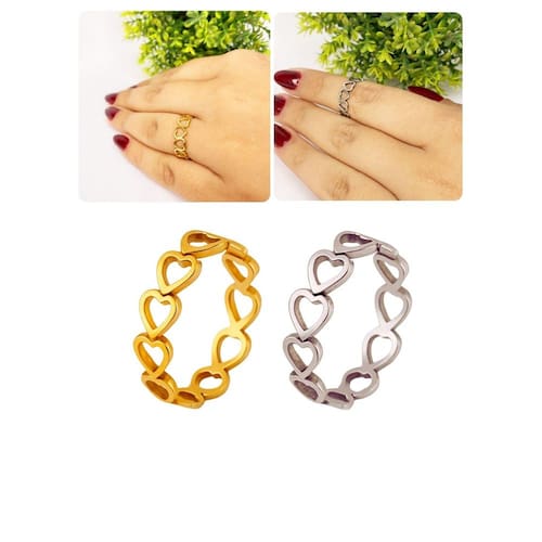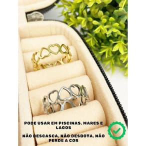 Anel feminino corações vazados delicado moderno minimalista prata dourado aço inox tipo falange Cor: prata Tamanho: 13 Anel feminino corações vazados delicado moderno minimalista prata dourado aço inox tipo falange Anel feminino é uma ótima opção para ficar na moda e dar um up no visual. Com material de aço inox, é perfeito para todas as ocasiões. Ideal também para presentear um amiga ou namorada. Anel aço inox, não descasca e não enferruja, podendo usar diariamente. ===================================== Fotos reais do produto na galeria Modelo a prova d'água, podendo usar em piscinas e praias, não descasca, não escurece, não perde a cor Detalhes técnicos: Marca: visujóias Modelo: anel delicado Espessura anel: 5mm Incluso: 1 unidade anel Material: aço inoxidável. Código do produto sku : 3521 : 6 meses. Todas as peças possuem tratamento antialérgico. =============================================================================== P:minha compra é segura R:toda compra que é feita aqui está em ambiente seguro, isso significa que se caso ocorra algum imprevisto faremos o estorno de seu pagamento. R: sim. P: produto é a prova d'água R: sim, pode usar em piscinas e praias que não escurece. P: tem R: sim, todos os nossos produtos tem de 6 meses, contra defeitos de fabricação. Todas as informações de cuidados são enviados junto com o produto. P: posta em quanto tempo P: posso trocar se não servir R: sim, enviamos nosso contato junto com o produto para orientação sobre troca. P: posso devolver se não gostar R: sim, caso não goste do produto é só entrar em contato conosco que iremos orientá-lo como efetuar a devolução. Dúvidas Pergunte à vontade, estamos aqui. ficaremos felizes em responder rapidamente. Aguardamos sua compra e estamos ao seu dispor : Marca: Não Informado