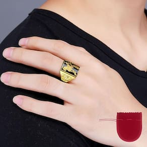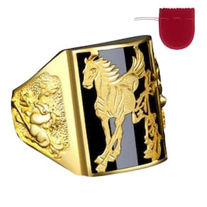 Anel Grande Masculino Cavalo Preto Banhado a Ouro Ajustável