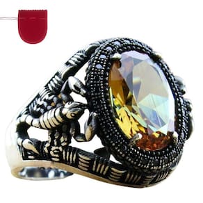 Anel Grande Prateado Escorpião Citrino Regulável Anel Grande e Imponente Prateado Ajustável você pode apertar ou alargar, caso seja necessário Perfeito para todas as ocasiões, inclusive para presentear, já que não precisa saber exatamente o tamanho pra comprar.Por ser ajustável cabe perfeitamente em qualquer circunferência anelar.Bela peça com ótimo acabamento.Largura de superfície: 19mm Peso líquido: cerca de 6gPedra sintética Acompanha saquinho de veludo. Marca: Pjk store