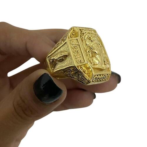 Anel Jesus Cristo Lado - Banhado A Ouro 18K