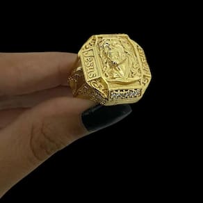 Anel Jesus Cristo Lado - Banhado a Ouro 18k Informações do Seu Pedido O que acompanha sua compra: - Saquinho de organza para armazenar sua joia com cuidado. - Embalagem em uma caixa elegante, ideal para presente. - Cupom de desconto exclusivo para sua próxima compra. - Flyer apresentando outros produtos da nossa coleção. - Carta de agradecimento especial. - Adesivo da marca ToJoia18k, um toque de carinho. - de 6 meses Especificações do Produto: - Material: Ligas metálicas de alta qualidade, desenvolvidas para fixação e absorção do ouro, finalizadas com verniz protetor. - Tonalidade: Aparência idêntica ao ouro maciço. - Produção: Artesanal, com atenção aos detalhes. - Tipo de banho: Banhadas a ouro 18k com 10 camadas espessas, finalizadas com verniz antialérgico . - Elos: Soldados dependendo do modelo . - Pedras cravejadas: Zircônia brilhante quando aplicável . Também temos produtos com banho a prata da mesma qualidade do ouro Tamanhos Disponíveis: Quando for feminino estará escrito no titulo - Cordões Masculinos: 60cm e 70cm padrão 70cm, consulte disponibilidade para 60cm via chat . - Cordões Femininos: 45cm e 50cm padrão 50cm, consulte disponibilidade para 45cm via chat . Nota: Nem todos os modelos possuem tamanhos femininos Feminino estará escrito no titulo . - Pulseiras: 18cm a 23cm padrão 21cm, consulte outros tamanhos via chat . Nota: Nem todos os modelos possuem tamanhos 18 e 19cm - Pingentes: Fiéis às imagens. Consulte-nos em caso de dúvidas. Espessura recomendada para cordão e pingente: A numeração do pingente estará no titulo Não são todos os modelos que temos do P a o GG - P: 1mm a 4mm - M: 4mm a 8mm - G: 6mm a 13mm - GG: 12mm a 18mm Dúvidas e Informações Adicionais: - : 6 meses termos enviados com o produto . - 7 Dias para devolver sem perguntas. - Prazo de envio: Até 24 horas úteis após confirmação do pagamento. Recomendações de uso: - Evite contato com produtos químicos aguarde o perfume secar antes de usar a peça . - Evite contato com shampoo, condicionadores e atividades físicas que causem suor excessivo. - Armazene em local seco e seguro, como o saquinho de organza fornecido. - Pode ser Utilizado no mar e piscina, mas lave com água corrente e sabão líquido neutro após o uso. Por que escolher ToJoia18k se você busca semi-joias luxuosas que combinem estilo, qualidade e sofisticação, encontrou o lugar certo Nossas peças recebem um banho espesso de ouro 18k, garantindo brilho duradouro e acabamento impecável. Design exclusivo e artesanal, perfeito para qualquer ocasião. Produtos feitos com materiais premium, garantindo durabilidade. Ao adquirir uma semi-joia ToJoia18k, você investe em qualidade, elegância e uma experiência única. Aguardamos sua compra Obs.: Pode ocorrer variação de fecho raramente . Imagens reais, sem edição. Qualquer Dúvida faça uma pergunta.
