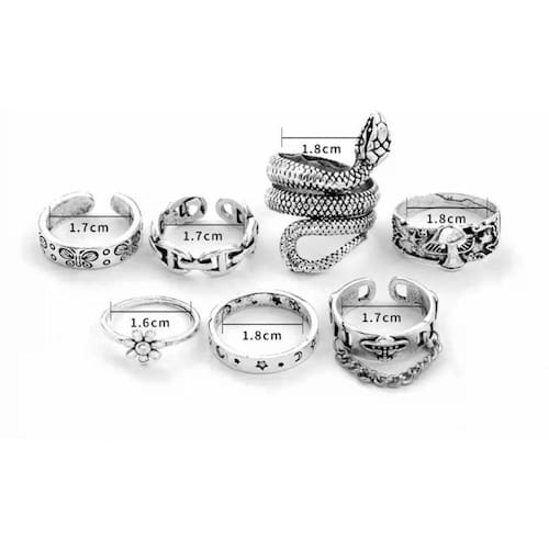 Descrição: - anéis luxuosos; - fashion e sempre na moda; - kit com 7 anéis; - formatos diferentes e luxuosos.