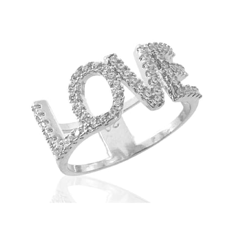 Anel Largo Love Cravejado Zircônias Cristais Banhado a Prata