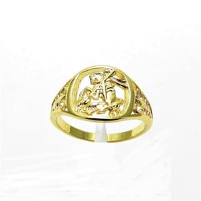 Anel Masculino São Jorge Aro 26 Banhado Ouro 18K AN100-26 Verificar a Certeza do Tamanho Aro Que Usa Beleza e Qualidade Sempre -Marca: Wnbijouterias -Modelo: Masculino São Jorge -Tamanho: Aro 26 -Tamanho São Jorge: 13mm -Largura Fio Anel: 2,5mm -Peso: 4Gr -Acompanha Saquinho Veludo -SKU Vendedor: AN100-26 Descrição Técnica: - Produto com banho super resistente. - Processo de Folheação em 3 Camadas de Ouro 18k= 750 - Não descasca, não perde a cor, qualidade garantida - Grande tempo de durabilidade. - Acompanha Embalagem/Porta Jóia - Todas as Fotos são Reais do Produto Acompanha: Certificado de garantia - Garantia apenas para descascamento do banho da jóia - Garantia não cobre defeitos de mau uso, aranhões ou quebra de partes da jóia Contra Indicações: - Não usar creme, shampoo, perfume, protetor solar e outros cosméticos por cima da jóia. - Evitar banho de mar Devido a oxidação da água Salgada - Evitar banho de piscina Devido a oxidação do Cloro e outros produtos O que você sempre ganha em nossa loja - Qualidade Banho Super Resistente - Antialérgico Não usamos Níquel em nosso banho - Beleza e Acabamento Caimento perfeito ao usar
