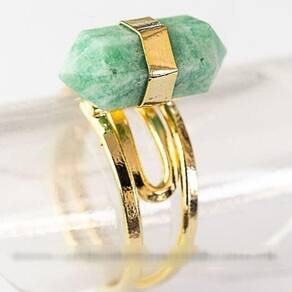 Anel Micro Pontinha Amazonita Verde Bi Ponta Aro Ajustavel Dourado, Anel Pedra Amazonita Verde natural de Garimpo com lapidação Manual Bi terminado Sextavado a montagem é com aro ajustavel ao dedo reforçado com banho em Flash dourado, Lindo brilho serve do 10 ao 30 Bi terminado são pontas com dupla terminação, ideais para usar no recebimento e envio de energia ao mesmo tempo, criando ponte energetica entre os cristais ao redor