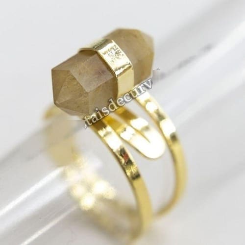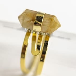 Anel Micro Pontinha Cristal com Rutilo Bi Ponta Aro Ajustavel Dourado, Anel Pedra Cristal com Rutilo natural de Garimpo com lapidação Manual Bi terminado Sextavado a montagem é com aro ajustavel ao dedo reforçado com banho em Flash dourado, Lindo brilho serve do 10 ao 30 Bi terminado são pontas com dupla terminação, ideais para usar no recebimento e envio de energia ao mesmo tempo, criando ponte energetica entre os cristais ao redor