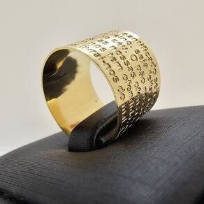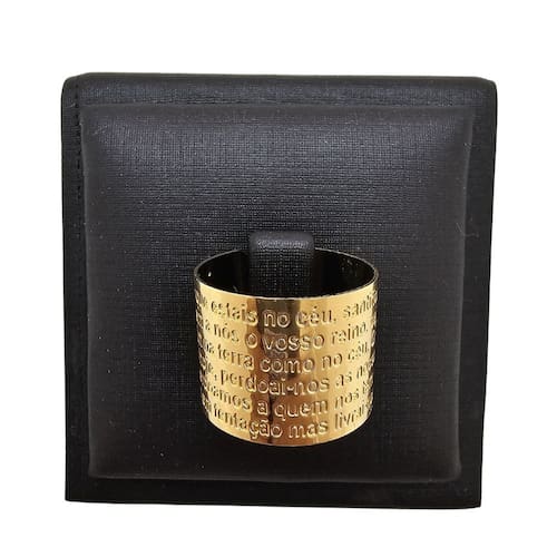 Anel com oração do Pai Nosso completa, modelo chapa, aro médio ajustável.