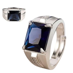 Anel Pedra Azul Banhado A Prata 925 Zircônias Ajustável - regulável