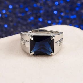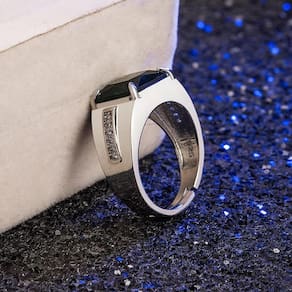 Anel Pedra Azul Banhado a Prata 925 Zircônias Ajustável