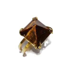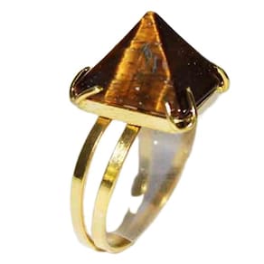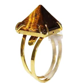 Anel Piramide Baseada na Grande Queops Pedra Cristal Lapidação é Manual tipo artesanal com excelente brilho a montagem é com aro ajustavel ao dedo reforçado banhado dourado, Lindo brilho serve do 10 ao 30